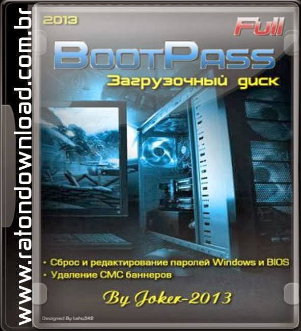 BootPass - disco de boot (Windows 7PE x86). Colocado em disco programa full-featured para redefinir senhas e editar e BIOS do Windows , removendo banners.